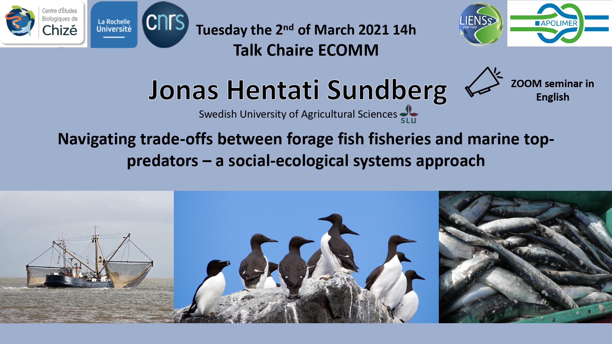Rencontre avec Jonas Hentati, socio-écologue à la Swedish University of Agriculatural Sciences, en visio au CRBC, Chizé, 2 mars 2021