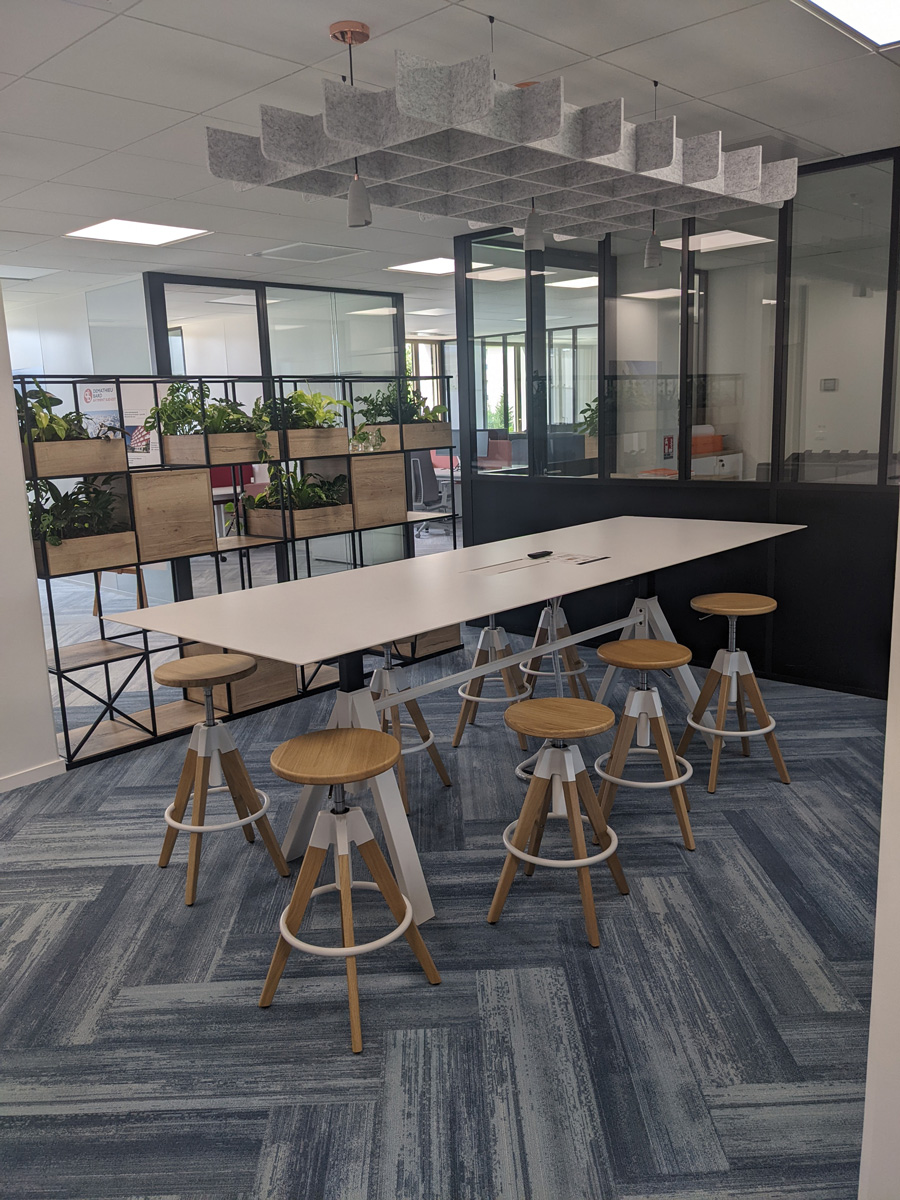 Ce bâtiment (RT 2012 – 40 %, BREEAM New Construction niveau Very Good) est un modèle d’éco-construction, avec des murs et planchers en partie en béton bas carbone, des revêtements intérieurs sains et peu polluants, un isolant naturel biosourcé et des brise-soleil orientables. Sur le toit, végétalisé, a été créé un potager partagé, et des panneaux photovoltaïques ont été installés.