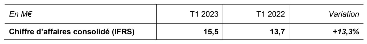 Le chiffre d’affaires d’INEA au 1er trimestre 2023 s’élève à 15,5 M€, en progression de 13,3 % sur douze mois. La société enregistre une accélération de la croissance de son chiffre d’affaires qui était en hausse de 6,9% sur la même période en 2022.