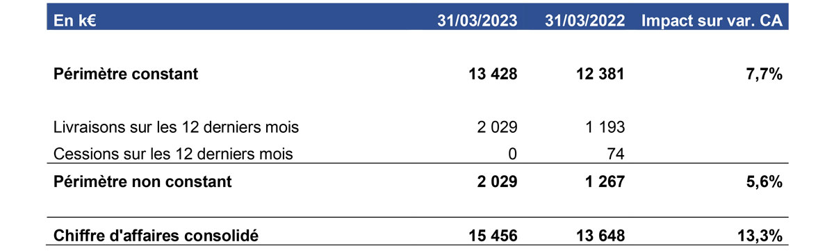 Chiffre d’affaires en hausse à 15,5 M€ (+13%)