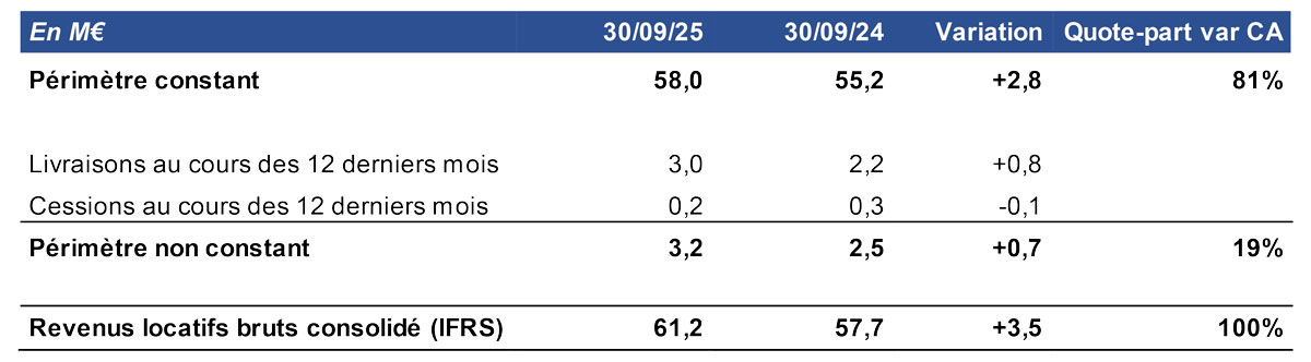 Revenus locatifs en hausse de 6,1% sur 9 mois