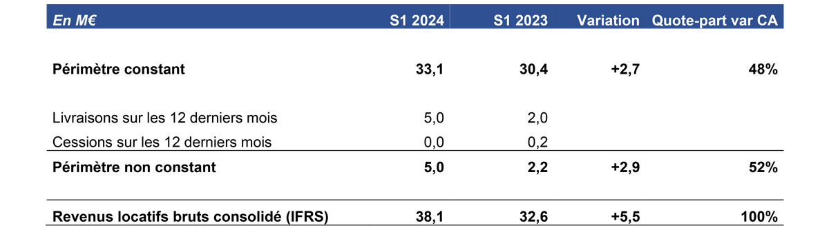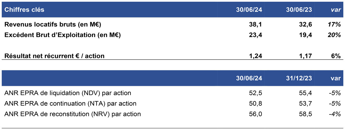 Le pipeline d’opérations en cours de construction – constitué des parcs d’activités Arty Station à Toulouse (5.603 m²), Olea à Mérignac (6.022 m²), Innovespace à Chalifert (7.765 m²), Hennequin et Papin à Trappes (9.367 m²), et des immeubles de bureaux Atravaia à Aix-en-Provence (5.363 m²) et Nexus à Montpellier (8.533 m²) – entrera en exploitation progressivement entre le 3ème trimestre 2024 et fin 2025, et soutiendra la croissance de la Société sur les prochains exercices.
