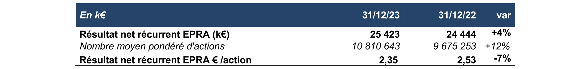 Le résultat net récurrent (RNR) progresse donc de 4%, à 25,4 M€. Par action, le RNR est en retrait de 7%, car les actions créées lors de l’augmentation de capital de juin 2022 sont désormais pleinement reconnues dans le nombre moyen pondéré d’actions (+12%).