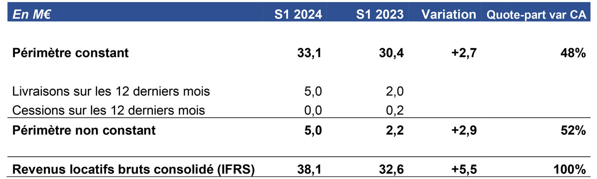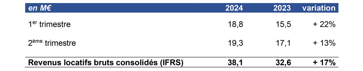 Forte hausse des revenus locatifs au premier semestre 2024 : + 17 %, à 38 M€