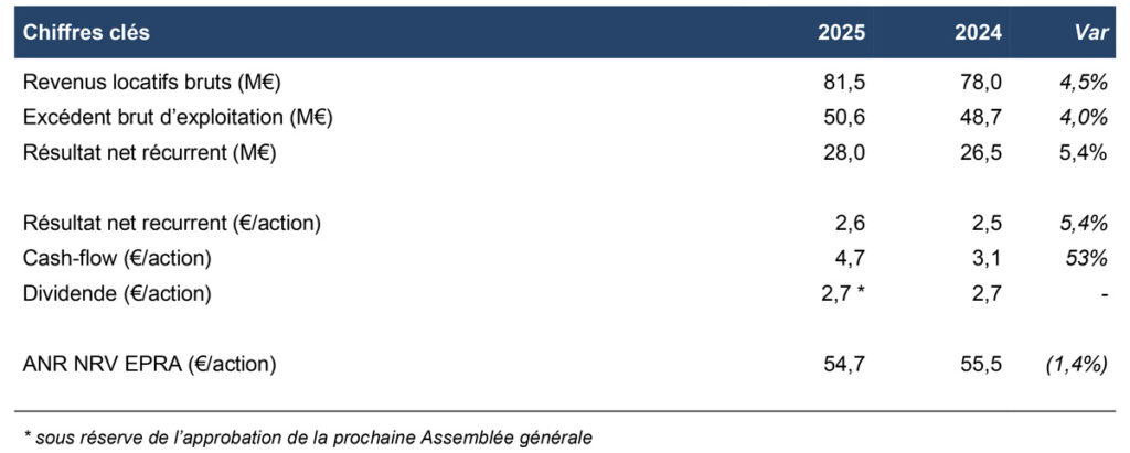 « Après un exercice 2025 solide, qui permet de servir un dividende attractif à nos actionnaires, nous nous projetons avec confiance vers l’avenir, avec la mise en œuvre de deux objectifs opérationnels qui doivent à terme améliorer sensiblement la profitabilité de la Société : la réduction de l’endettement d’une part, de manière progressive, en poursuivant la politique d’arbitrages choisis et ciblés entamée en 2025 ; l’amélioration du taux d’occupation de notre patrimoine d’autre part, en misant sur les atouts intrinsèques du portefeuille constitué, qui devront faire la différence quand le marché locatif reprendra des couleurs. »
