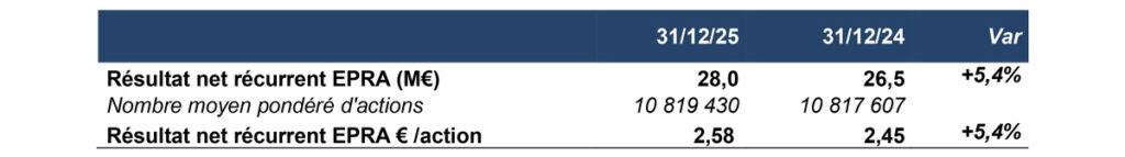 La guidance 2025 de croissance minimale du cash-flow ​(initialement de + 10 % et relevée à + 40 % en fin d’année) a été dépassée, avec un cash-flow en hausse de 53% à 4,7 €/action grâce aux arbitrages réalisés.