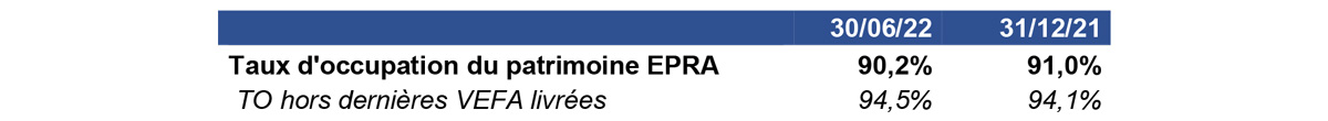 Cette activité locative permet au taux d’occupation de rester au-dessus de 90%. Le ralentissement du rythme de commercialisation des dernières VEFA livrées explique le léger retrait constaté sur 6 mois (-0,8%) :
