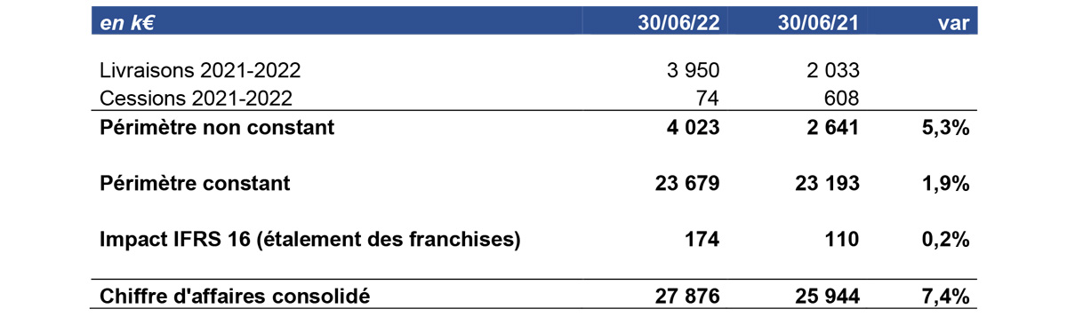 Le chiffre d’affaires consolidé s’établit au final à 27,9 M€, en hausse de 7,4% par rapport à la même période de l’exercice précédent. La croissance est de 1,9% à périmètre constant, avec un effet de l’indexation encore limité (1,2%) par rapport à son niveau attendu sur l’année.