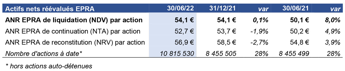 Les résultats semestriels de la Société, portés par la prise de valeur du patrimoine, lui permettent d’effacer dès le 30 juin l’effet dilutif de l’augmentation de capital réalisée le 24 juin 2022.