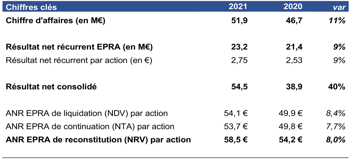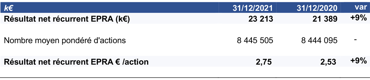 Dividendes réinvestis, la hausse est de 25%, surperformant largement les indices EPRA Europe (+18%) et SIIC France (+10%).