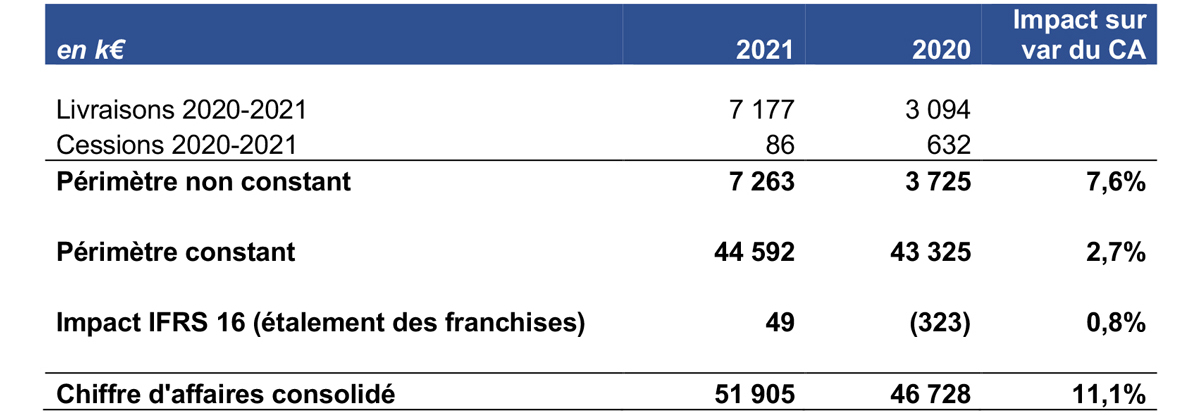 Chiffre d’affaires en augmentation de 11%, dont 2,7% à périmètre constant