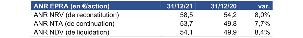 Les trois Actifs Nets Réévalués par action recommandés par l’EPRA sont tous en hausse de l’ordre de 8% sur l’exercice.