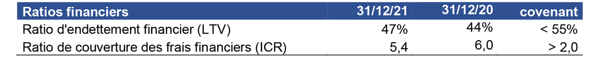La structure bilancielle reste saine, avec un LTV (loan-to-value) à 47%, toujours inférieur à la guidance fixée, et un ratio de couverture des intérêts de la dette supérieur à 5.